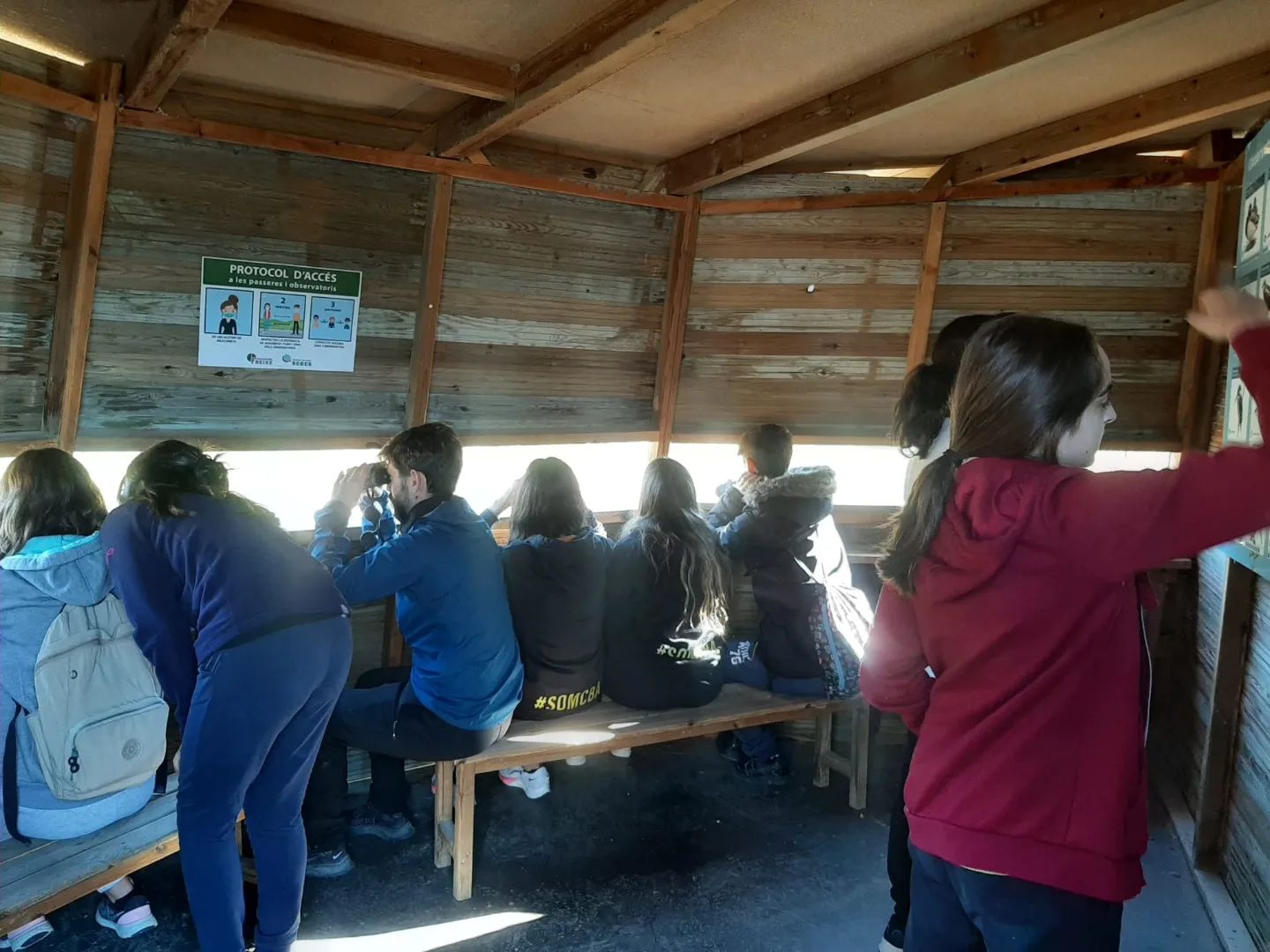 Al matí següent vam anar fins la Reserva Natural de Sebes. Primer amb l’ajuda d’uns binocles vam observar aus en el seu hàbitat natural des de diferents observatoris. Seguidament vam treballar els ecosistemes més comuns a Catalunya a partir de l’observació del nostre entorn. Tot caminant vam topar amb els cavalls de la Camarga i vam parlar de les xarxes alimentàries. Després de dinar vam tornar cap a l’alberg.