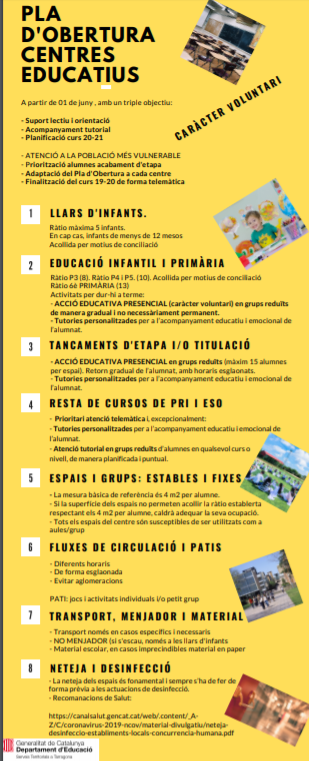 Pla d’obertura centres educatius Feu un comentari / Per admin / 29/05/2020 / General Portada Pla retorn juny 2020 Declaració responsable