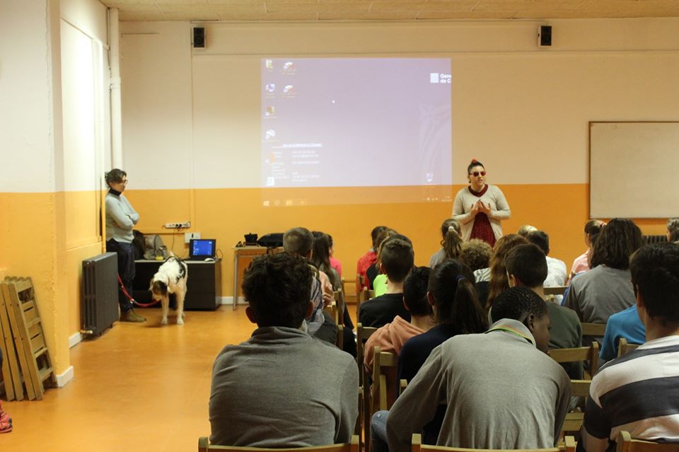 ← Ella és la Meritxell Lorca. Es va quedar cega total als 15 anys i ara és esquiadora i atleta. Ens va venir a fer una xerrada sobre la superació de la seva ceguesa.