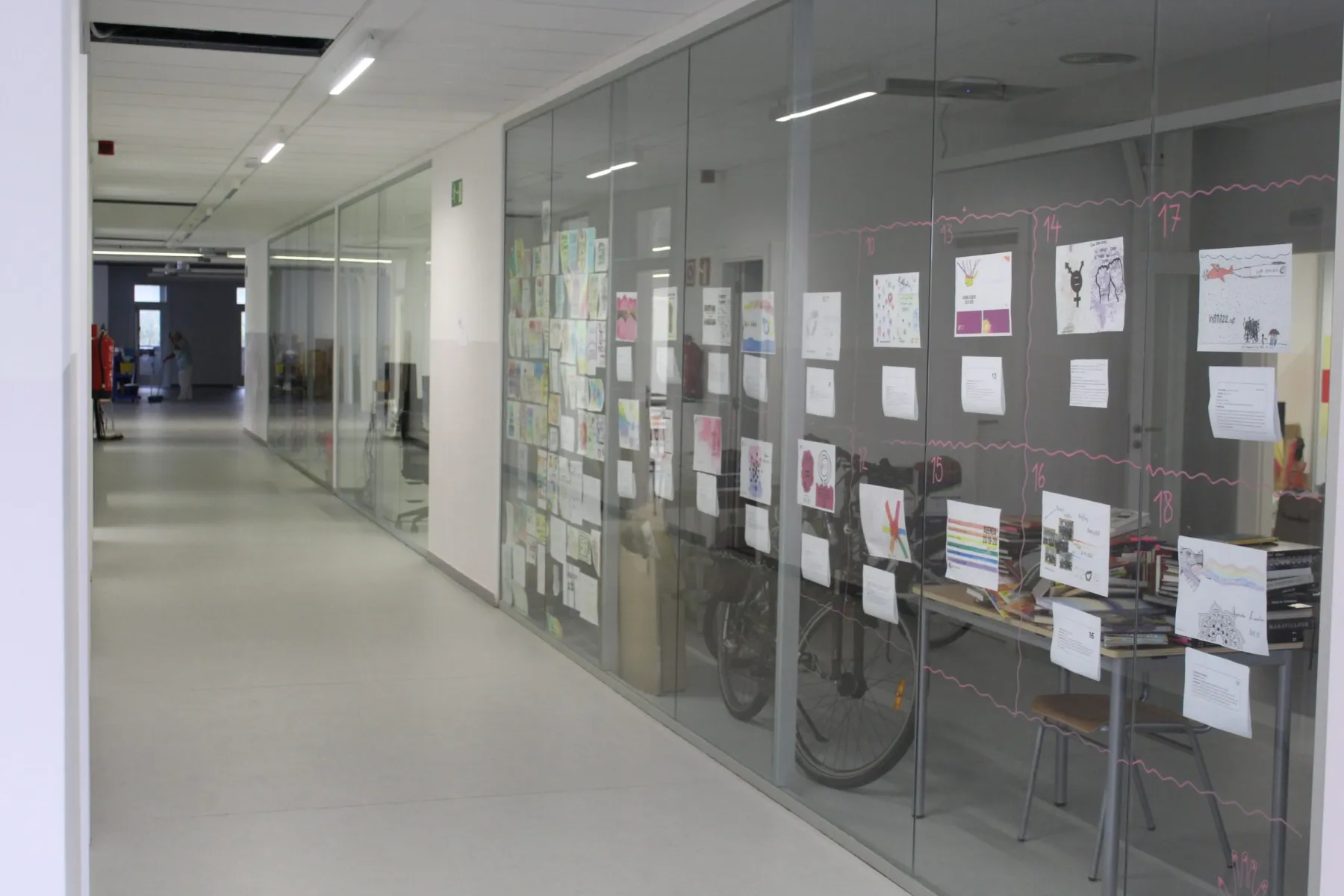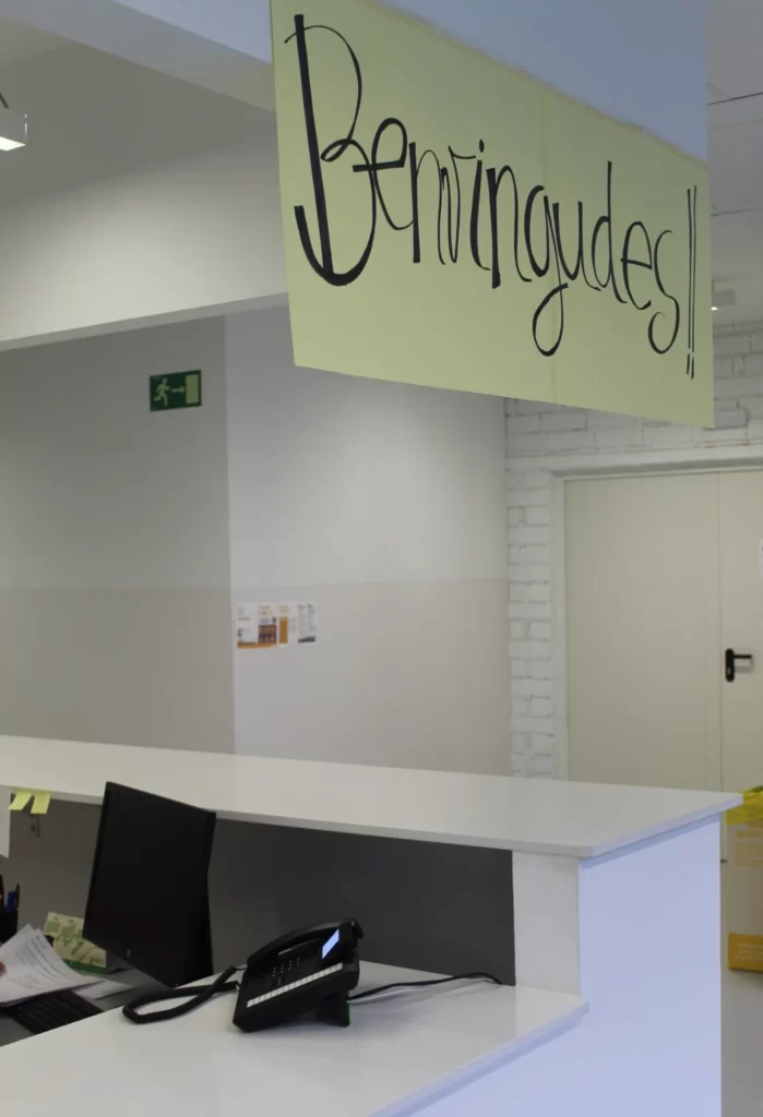 Una vegada hem accedit al segon pis, el primer que ens trobem és el rebedor, on deixem cada matí els nostres patinets i saludem els companys i companyes. Allí també tenim un calendari per estar al dia de què passa al món.