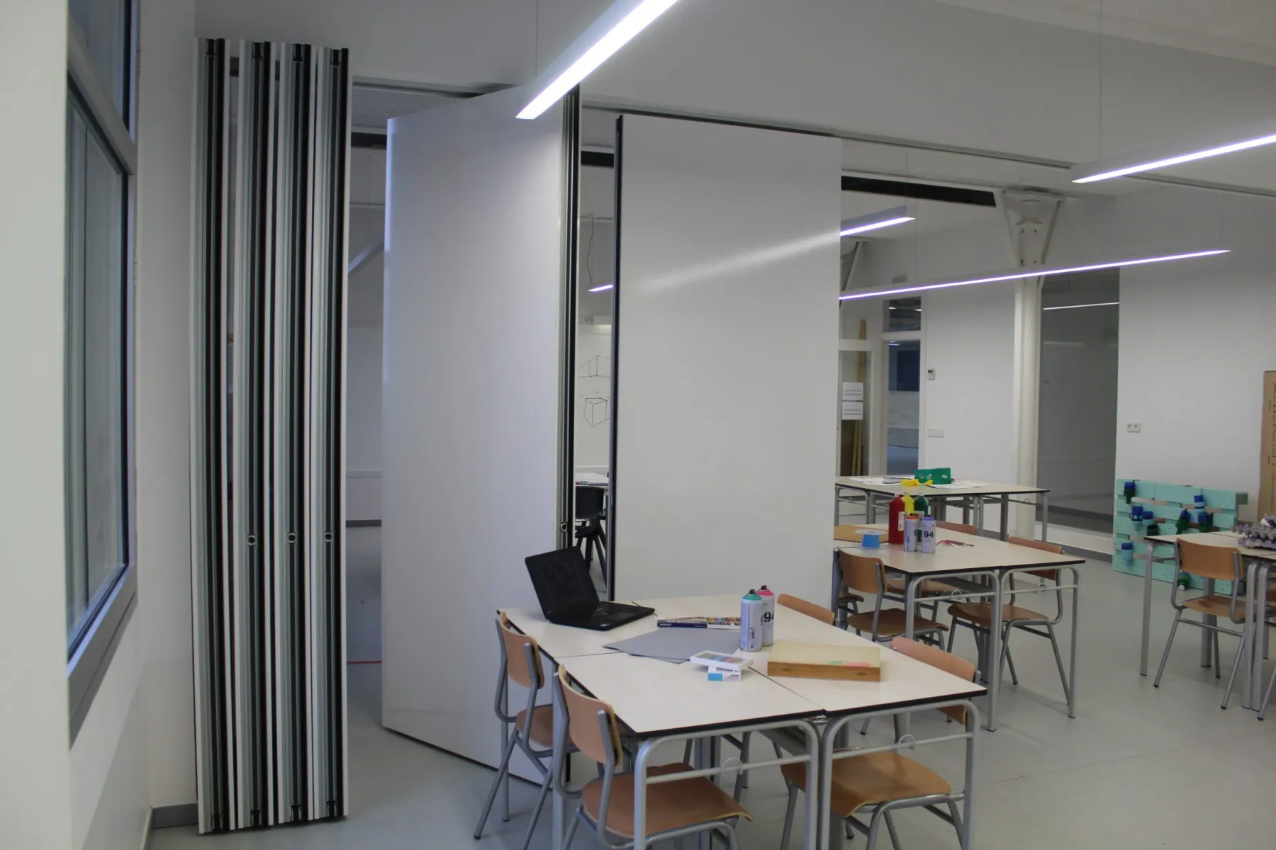 Ja quasi per finalitzar, tenim dues aules polivalents que es poden convertir en una sala molt gran.