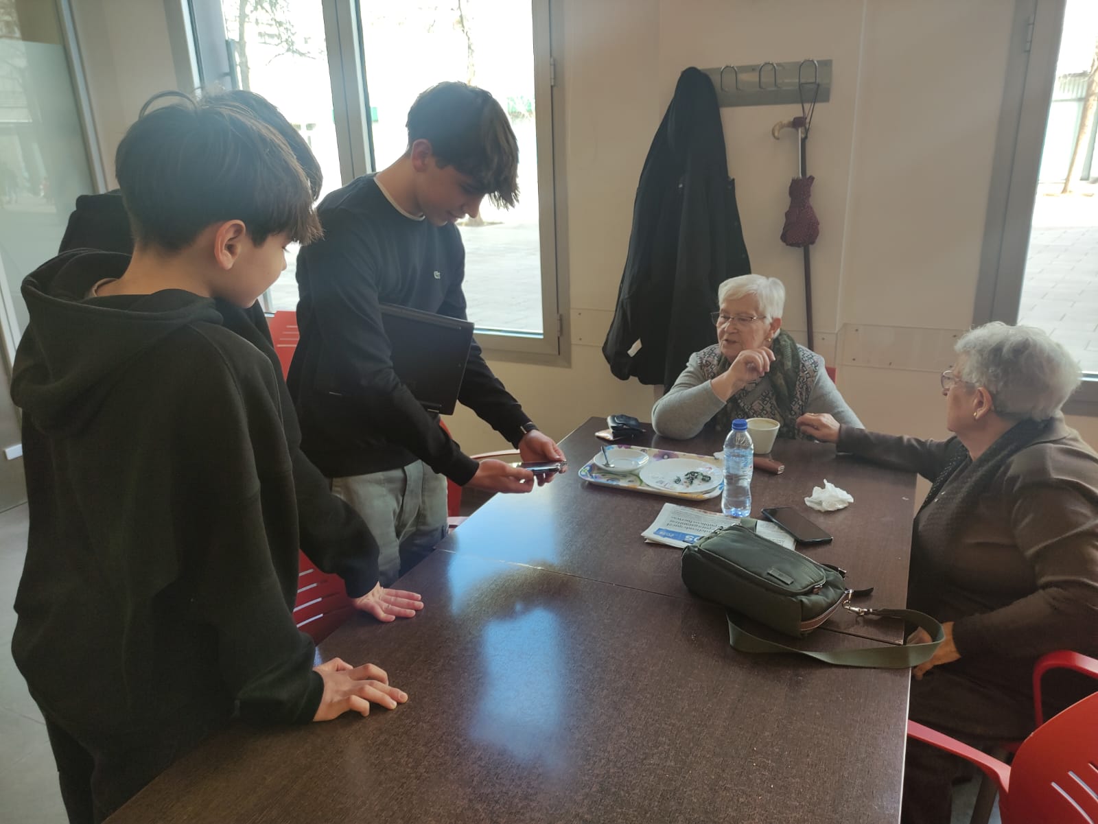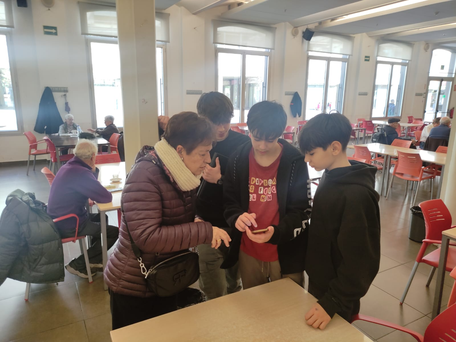 L’alumnat de 3r d’ESO està immers dins del projecte acTUa en què fan diverses accions en les entitats del barri. Una d’aquestes accions és el projecte d’alfabetització digital en el casal de gent gran del barri on responen dubtes o ajuden en l’ús de dispositius digitals.
