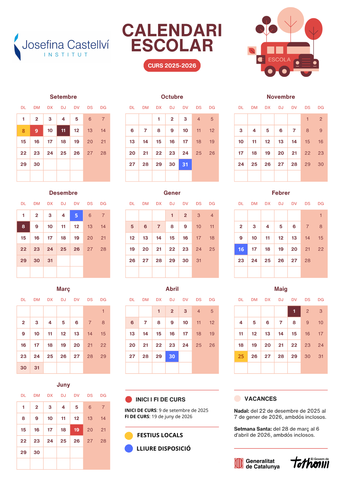 Us deixem aquí el calendari d’aquest curs 2025-2026