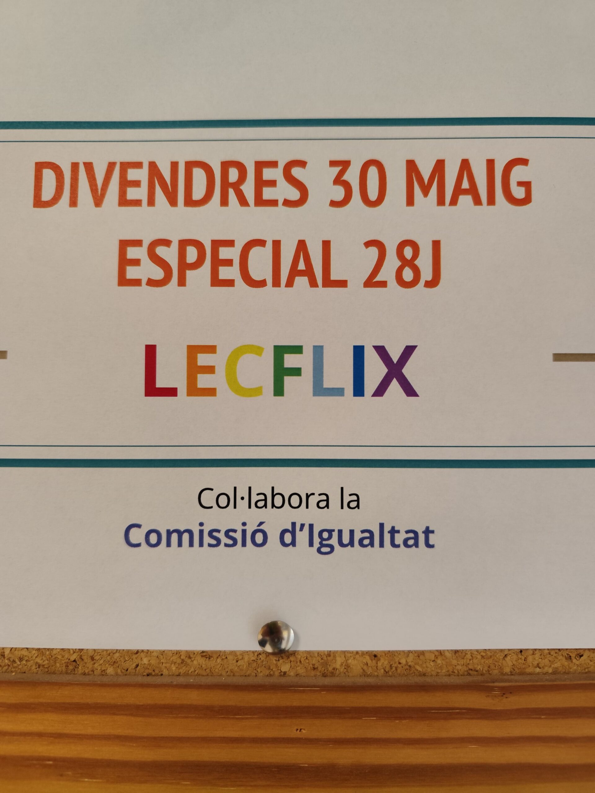 El pròxim divendres 30 de maig tens una cita per assistir a la darrera sessió del projecte LECFLIX. Un LECFLIX ESPECIAL 28J en col·laboració amb la comissió d’Igualtat on es faran recomanacions de llibres de literatura juvenil amb temàtica LGTBIQ+.