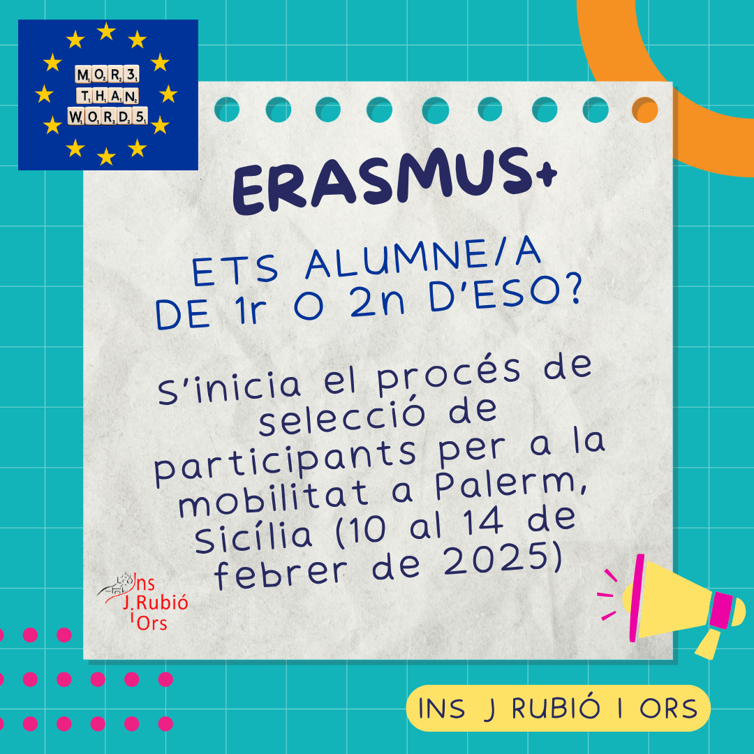 S’inicia el procés de selecció de participants per a la primera mobilitat del programa ERASMUS+ a Palerm, Sicília que es realitzarà del 10 al 14 de febrer de 2025.