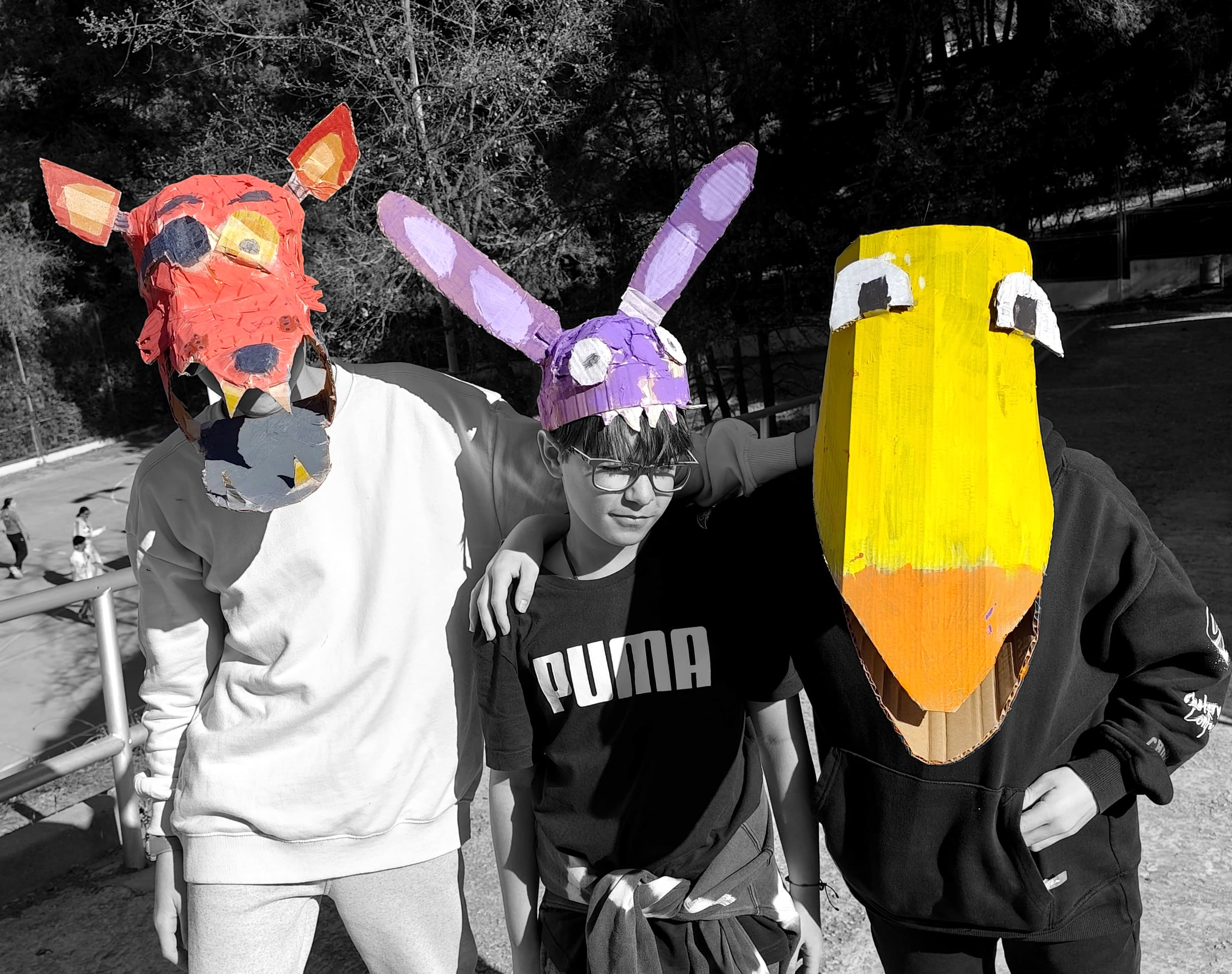 Un dels reptes d’aquest trimestre ha estat crear la màscara d’un animal (real o fantàstic) que expressi una emoció, utilitzant el color com a element comunicatiu.