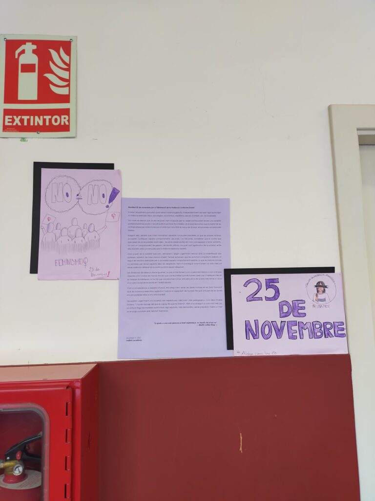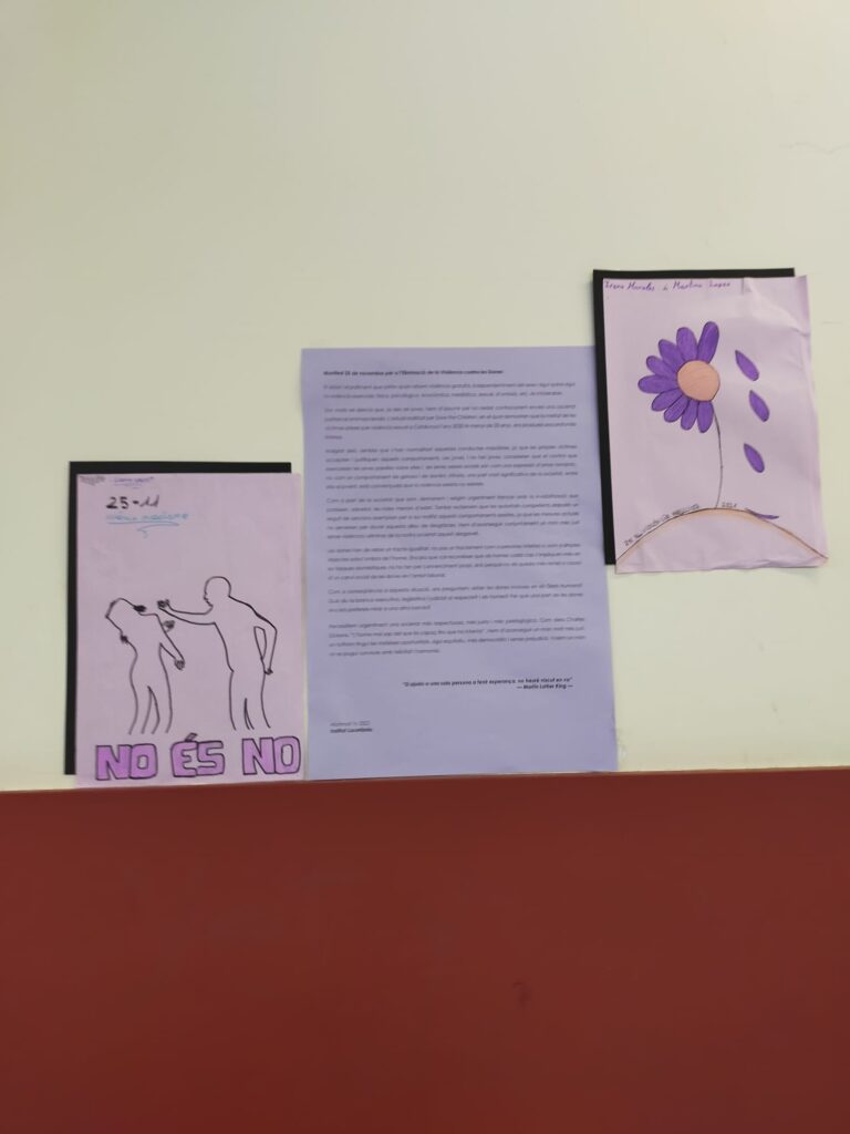 1r D’ESO FA UN MANIFEST CONTRA LA VIOLÈNCIA DE GÈNEREPer Iara Sofia Martínez Rando / 30/11/2021 / ESO General Portada Revista Per aquest 25 de novembre, els alumnes de 1r d’ESO han penjat el manifest que van elaborar en contra de la violència sexista, juntament amb dibuixos que van fer.