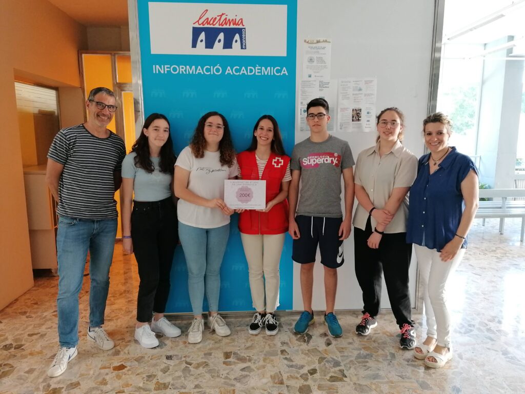I per aquest motiu, el dia 2 de juny de 2022, quatre alumnes representants de 4t d’ESO, juntament amb el director i la coordinadora d’activitats van assistir a la trobada amb una encarregada de la Creu Roja per poder fer-li entrega de la donació de 200 €.