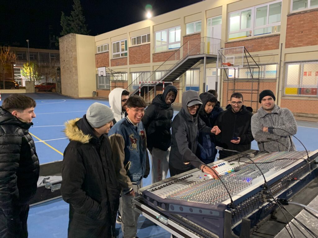 Els alumnes de 1r curs del CFGS de Manteniment Electrònic (EEC0) vam plantar cara al fred i vam fer la nostra classe d’equips d’àudio al pati de l’Institut Lacetània, i com ja comença a ser tradició, vam muntar un equip de so professional.