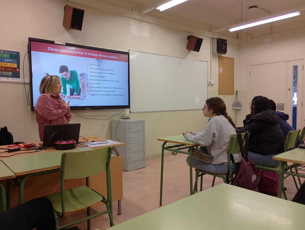- L’Olga Fernández, directora d’Adecco de Catalunya Oest, ha donat pautes a l’alumnat sobre com enfocar la cerca de feina, així com l’orientació laboral.