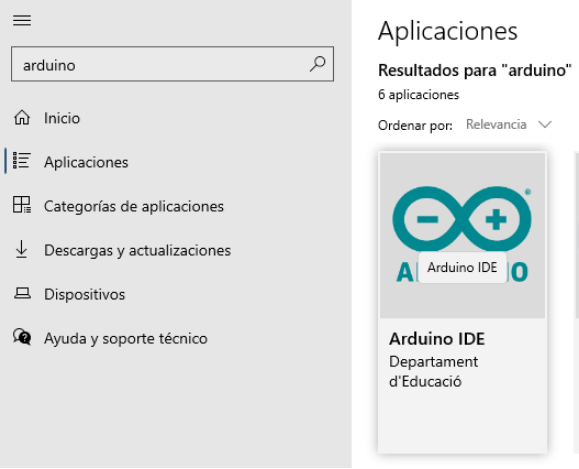 3. Anem al lloc on posa “Buscar aplicaciones” i busquem per exemple, “Arduino”.