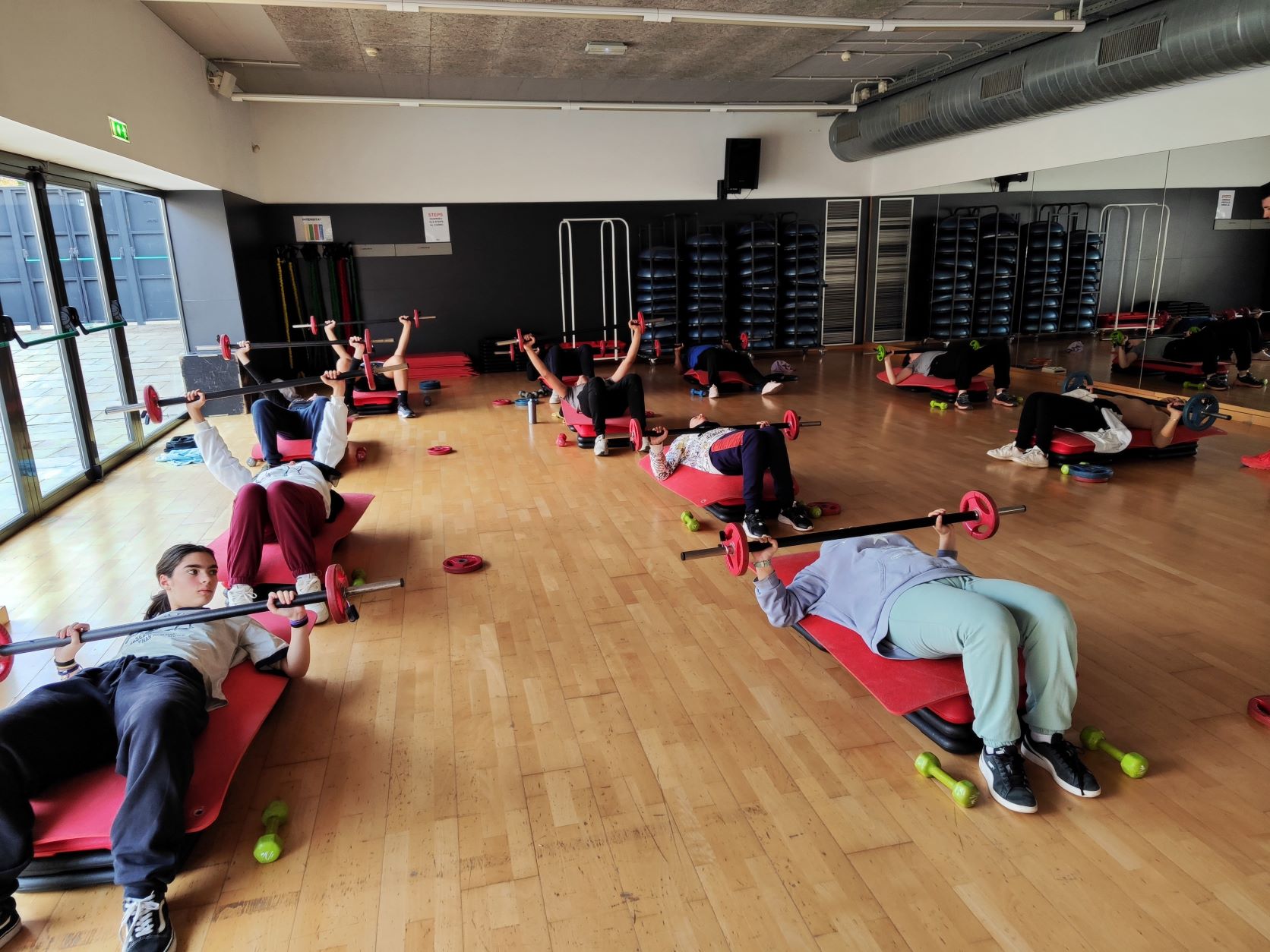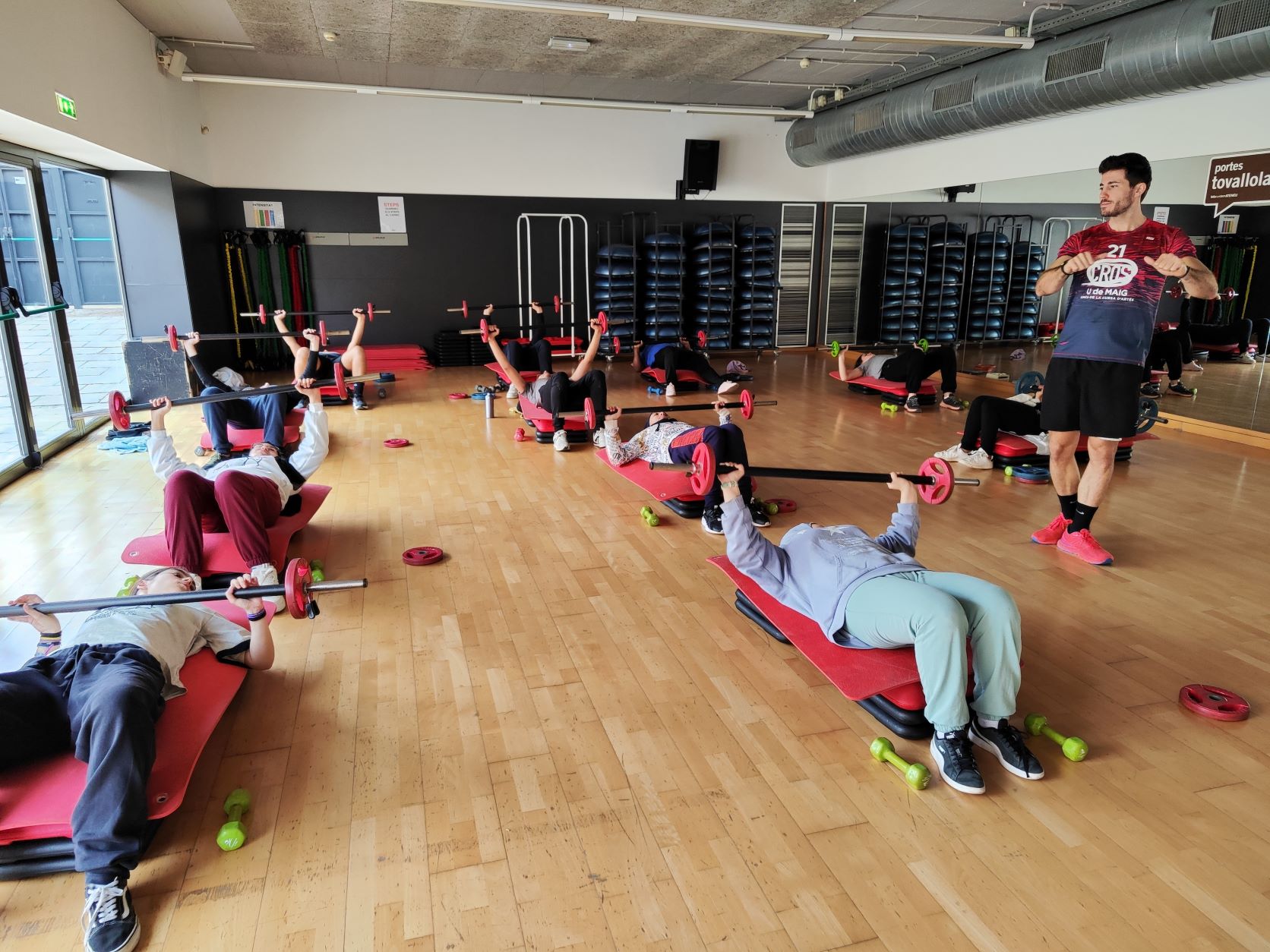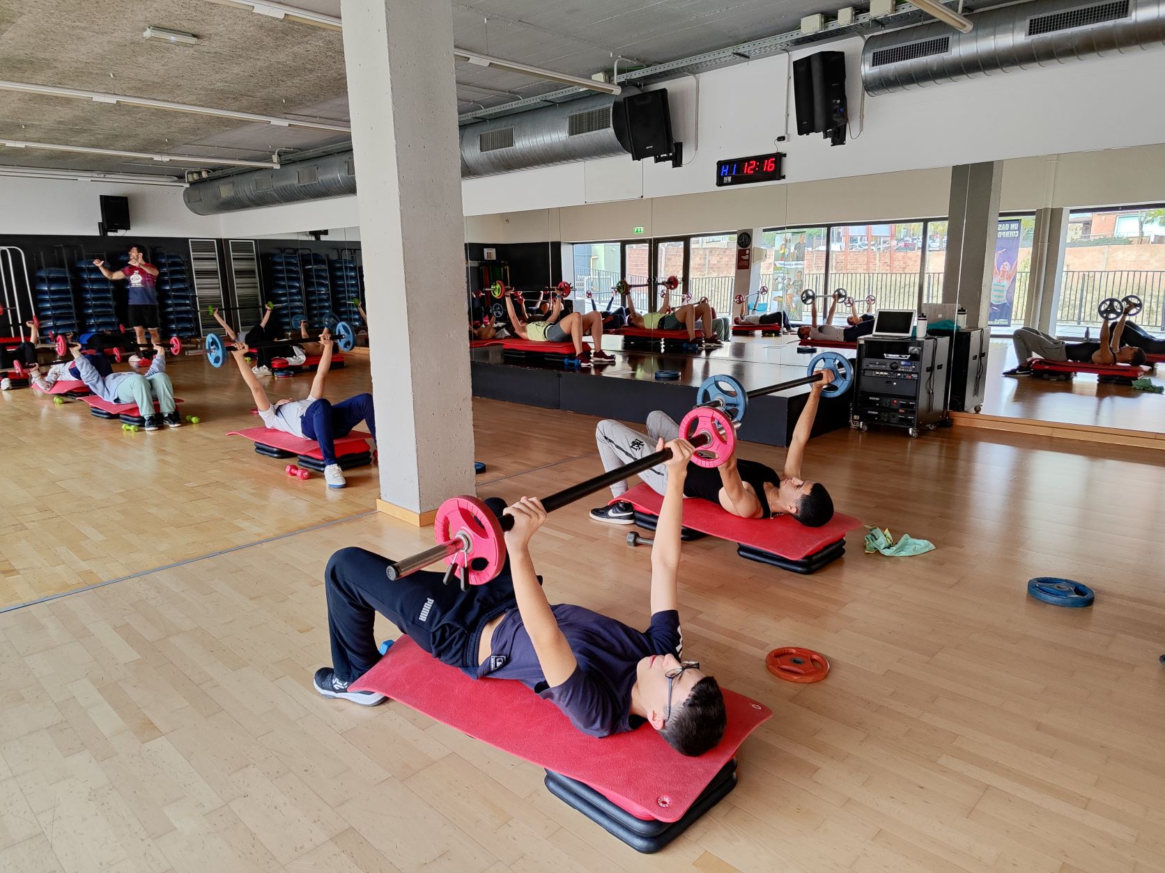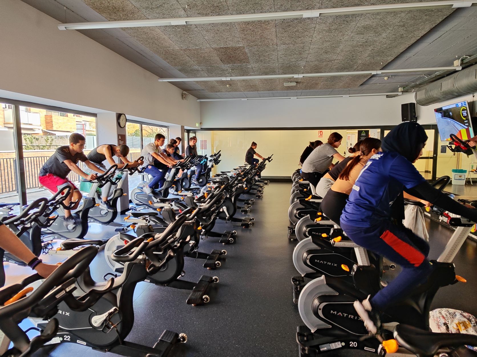 Guiats pels monitors vam treballar diferents parts del cos, com el pit, l’esquena, les cames, els bíceps, d’entre altres. I per acabar vam fer 20 minuts de ciclisme amb bicicletes estàtiques. Tot això acompanyat amb música que ho feia molt més entretingut.