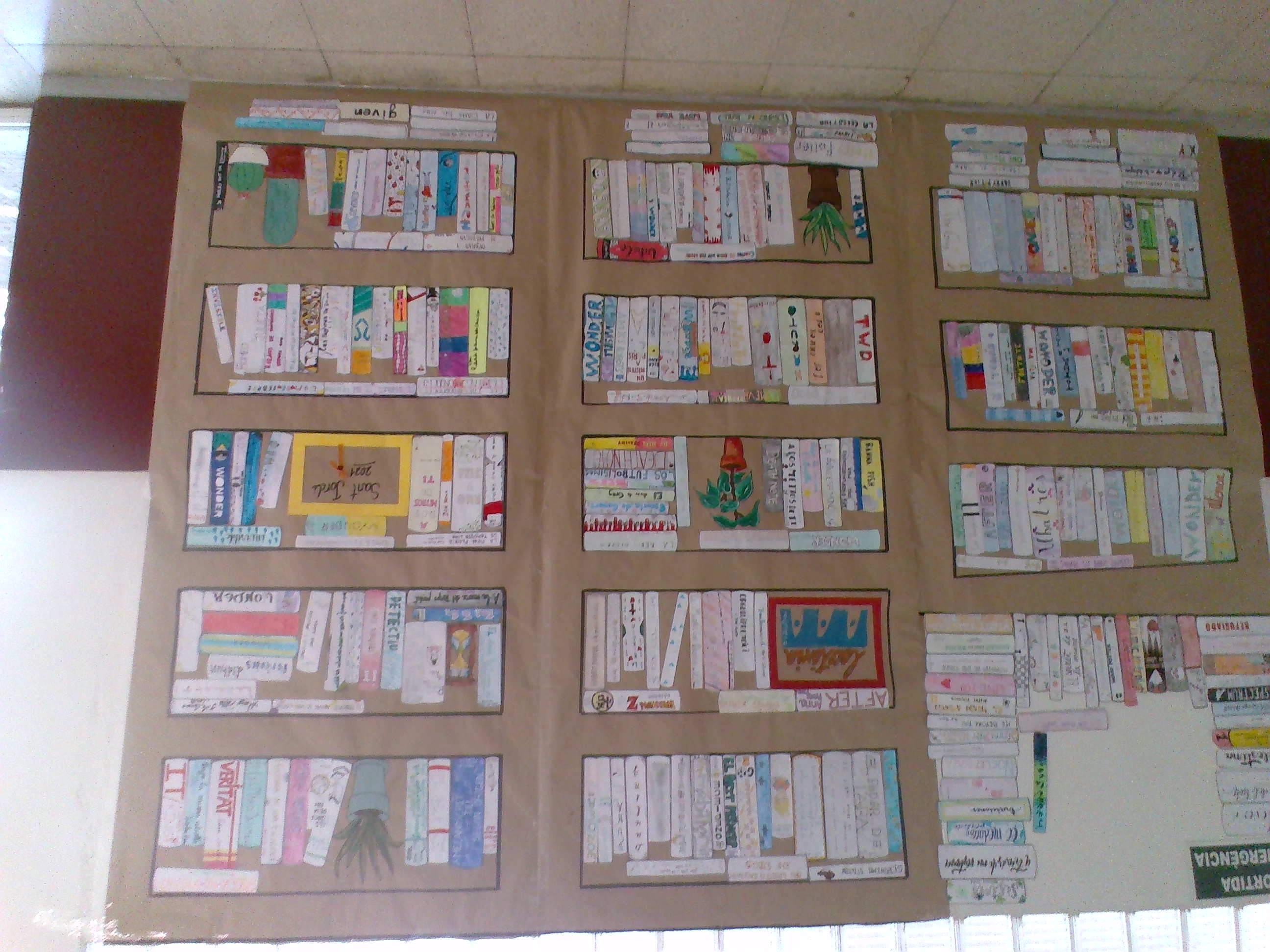 Per aquest Sant Jordi s’ha dut a terme una activitat col.laborativa en què tot l’alumnat de l’ESO i de batxillerat ha dibuixat el llom d’un llibre d’una de les lectures que els ha agradat més.