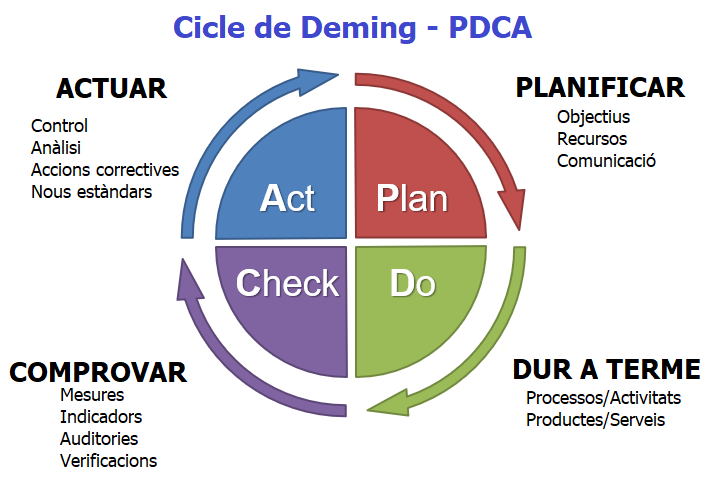 Per tant, cal una bona planificació de la nostra activitat, dur a terme els processos i activitats segons aquesta planificació prèvia, comprovar els resultats obtinguts i, en funció d’ells, actuar amb l’objectiu de millorar aquests resultats.