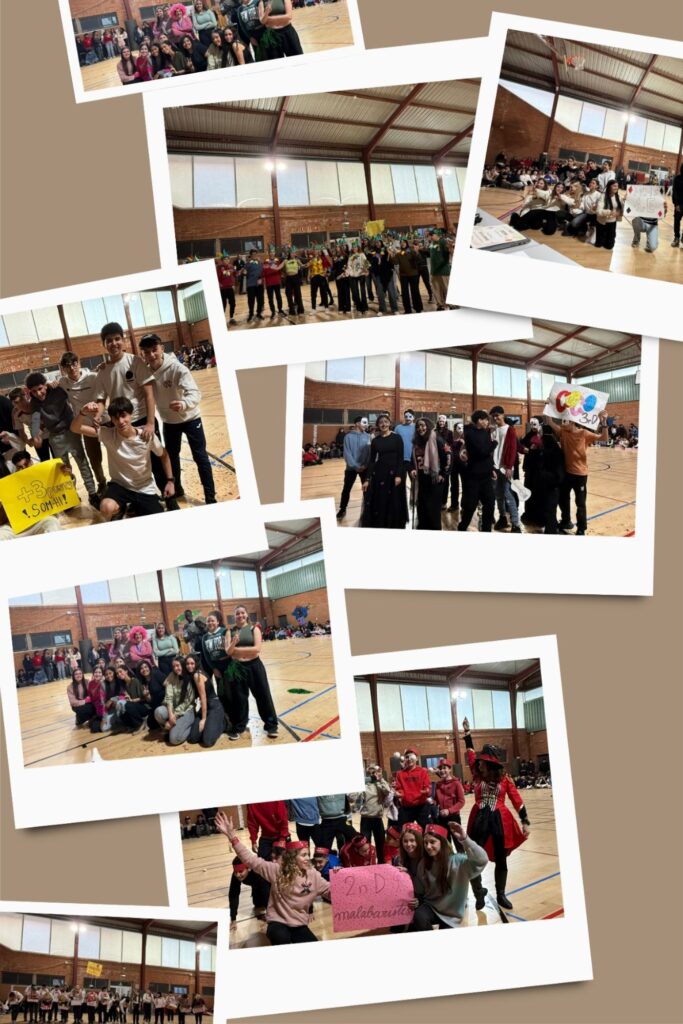 1r d’ESO. La classe guanyadora va ser la D. Van anar de pallassos amb unes disfresses molt divertides i un espectacle còmic.