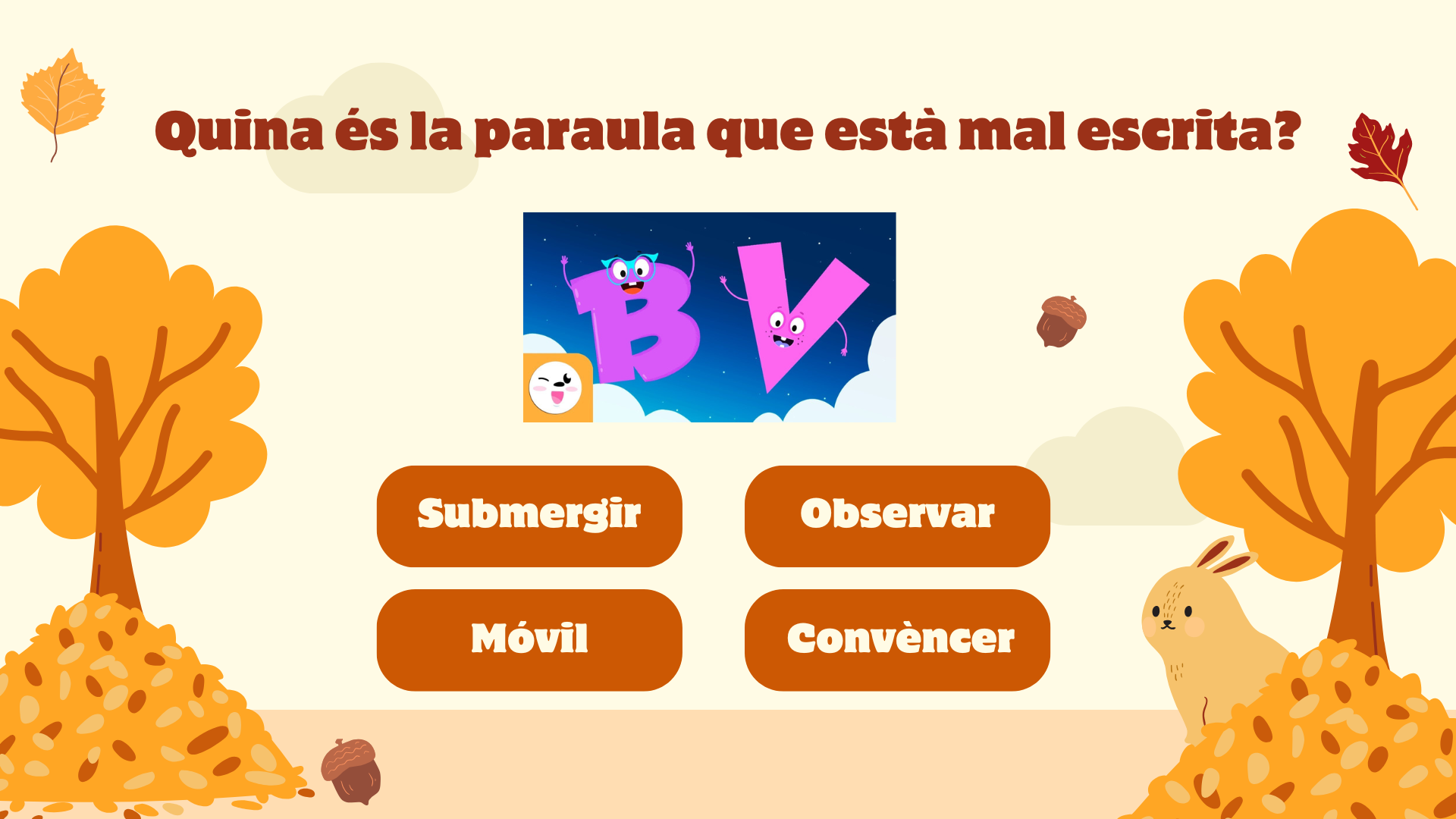 Hola nois i noies, us deixo un Quiz d’ortografia bàsica catalana per practicar normes d’ortografia com l’ús de majúscules, l’accentuació, l’accent diacrític o la norma de la v i la b, entre d’altres.