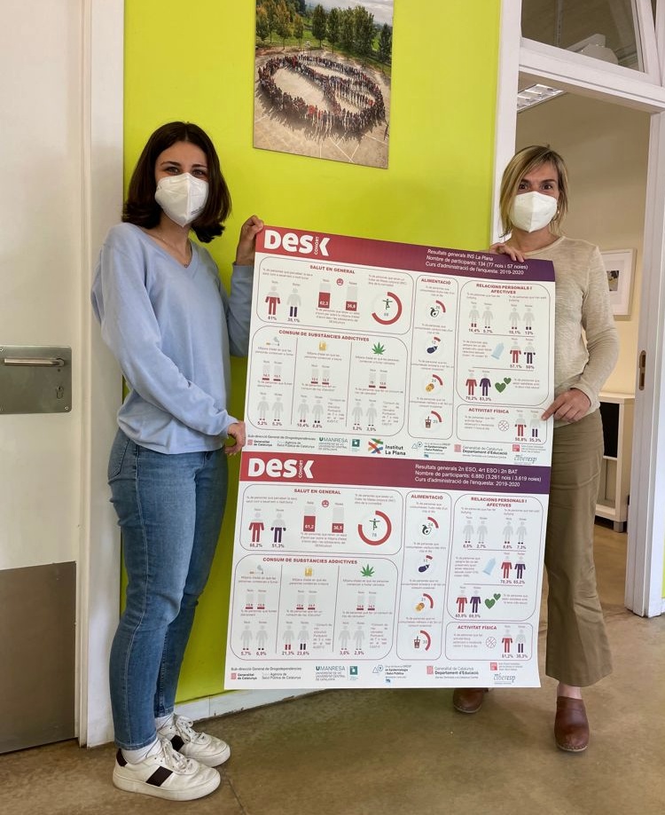 La Judit , coordinadora del treball de camp, ens ha fet lliurament de la infografia amb els resultats del projecte Desk-cohort que vam realitzar el curs 19-20. Desk-cohort és estudi sobre hàbits saludables que s’ha fet a 65 centres de secundària de la Catalunya Central, públics i concertats. Es treballen hàbits de Salut general, activitat física, alimentació, consum de substàncies addictives i relacions personals i afectives