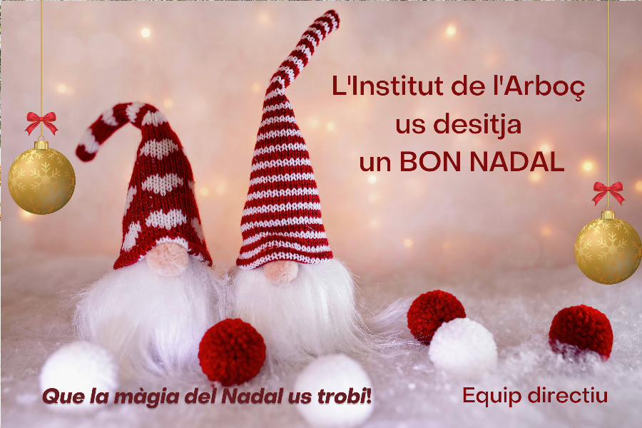 Us recordem que després de les festes de Nadal, d’acord amb el calendari escolar, reprenem les classes el dimarts 10 de gener de 2023 atès que el dilluns 9 de gener de 2023 és festa local a l’Arboç.