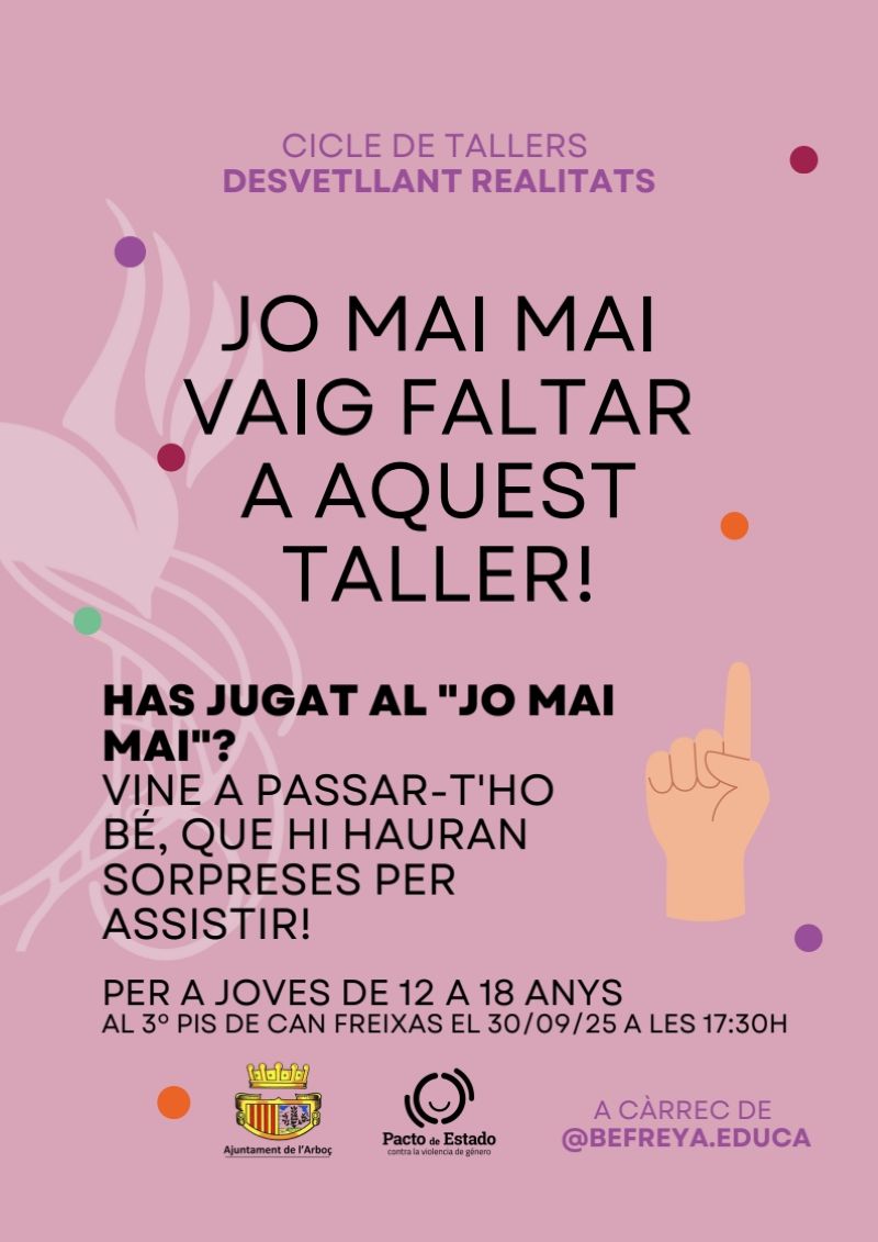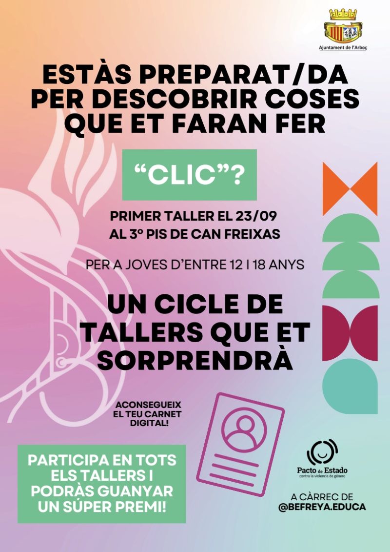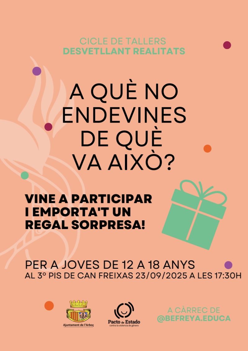 L’Ajuntament de l’Arboç organitza el cicle de tallers “Desvetllant realitats” que adreçat a joves d’entre 12 i 18 anys i està conduït per @befreya.educa. Es tracta d’una proposta participativa i engrescadora per reflexionar i compartir experiències.
