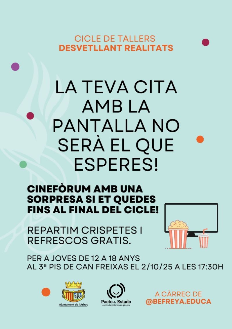 - “LA TEVA CITA AMB LA PANTALLA NO SERÀ EL QUE ESPERES!” (cinefòrum amb crispetes i refrescos)