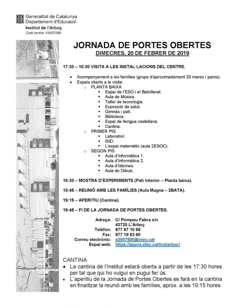 El dimecres 20 de febrer, a partir de les 17:30 hores, hem obert les portes de l’institut per explicar a les famílies com treballem i ens organitzem, amb la finalitat de donar als vostres fills la millor resposta educativa.