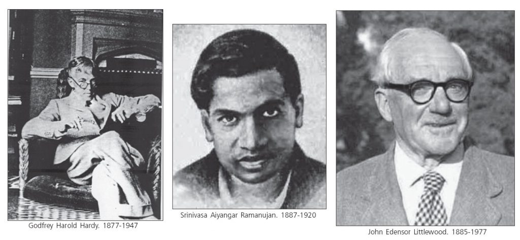 Srinivasa Ramanujan (Erode 1887 – Kumbakonam 1920) va néixer a l’Índia. L’any 1913 va enviar alguns descobriments al matemàtic britànic G.H.Hardy (1877-1947). Hardy va reconèixer immediatament la seva qualitat i li va aconseguir una beca per estudiar en el Trinity College de Cambridge.