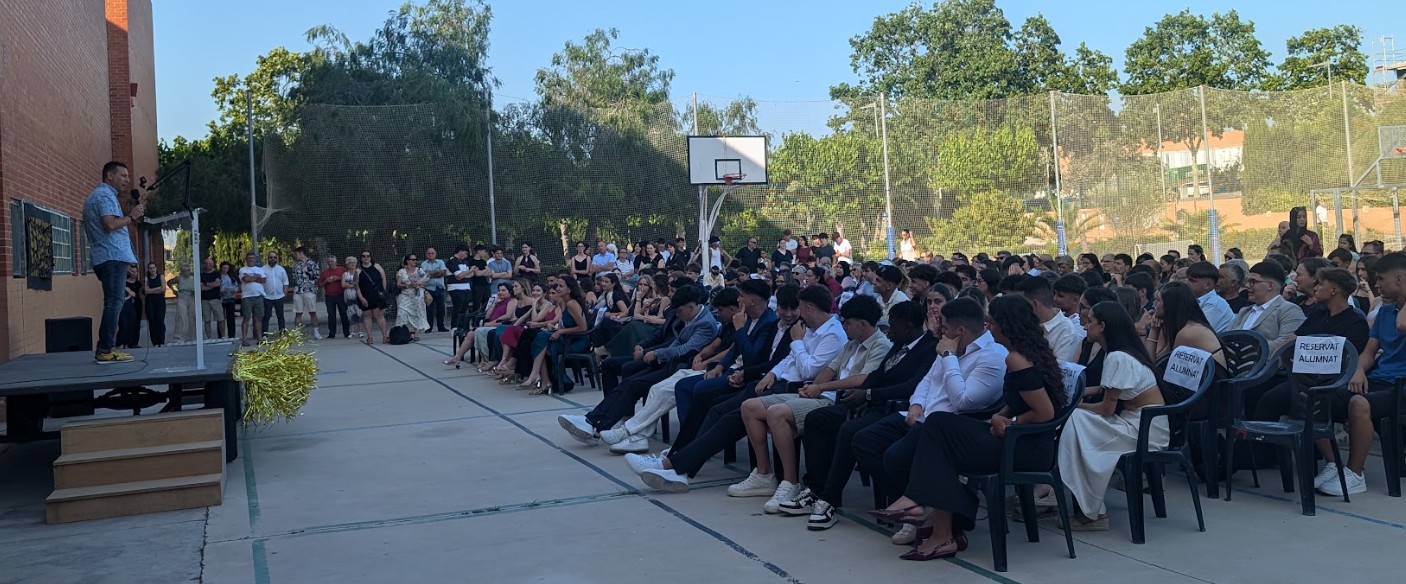 L’alumnat també va voler tenir unes paraules de reconeixement per al professorat, agraint la seva dedicació, paciència i acompanyament al llarg dels anys. Posteriorment, es van repartir els diplomes i les orles, en un ambient ple d’emoció, somriures i aplaudiments.