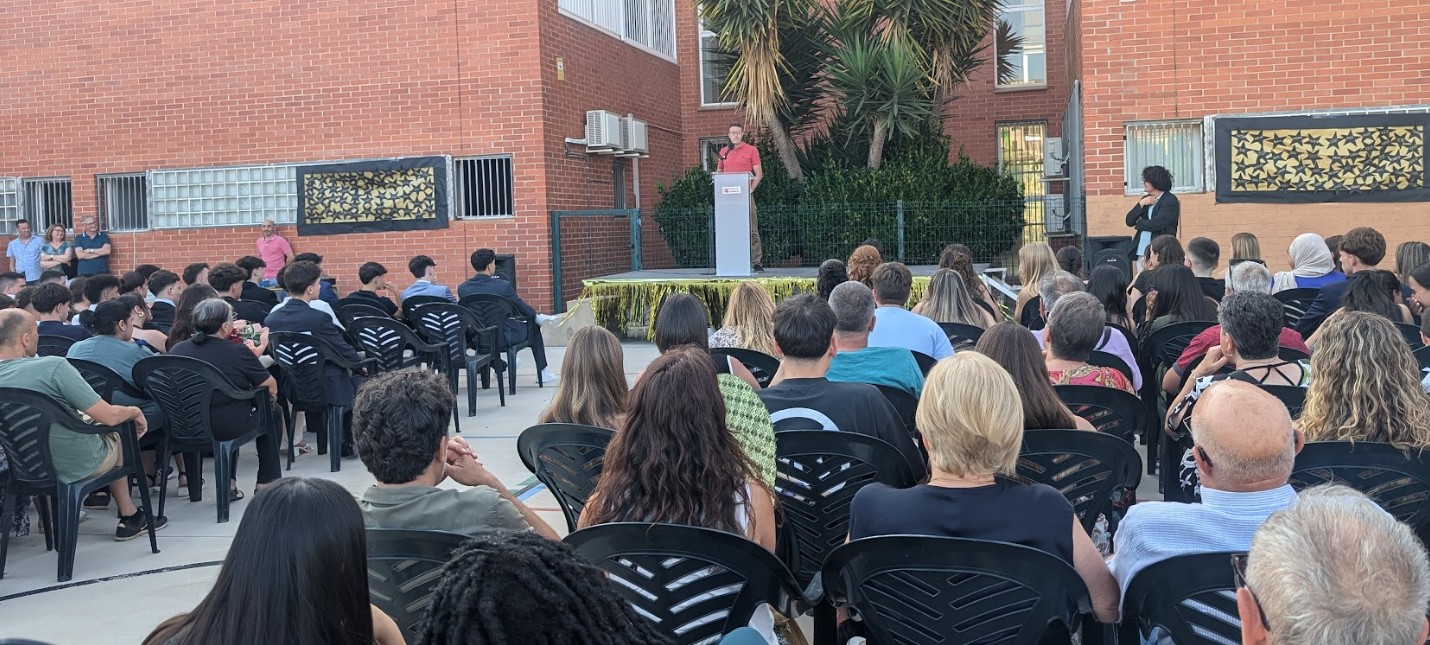La graduació va començar amb la intervenció del director del centre, qui va voler obrir l’acte amb una reflexió inspiradora: va explicar les dificultats que va tenir Albert Einstein per accedir a l’educació i com, malgrat els obstacles, va acabar convertint-se en un dels grans genis de la història. Amb aquest exemple, va voler fer veure a l’alumnat la importància de valorar les oportunitats que tenen i d’aprofitar-les amb responsabilitat i dedicació. Tot seguit, va felicitar-los pel seu esforç, constància i compromís durant aquesta etapa clau, i va agrair de manera especial el suport de les famílies, tot remarcant que l’èxit assolit és fruit del treball conjunt entre alumnat, professorat i famílies.