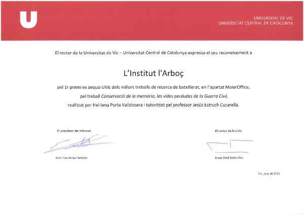 Hel·lena Porta Valldosera, estudiant de segon curs de batxillerat de l’Institut de l’Arboç, ha resultat guanyadora del primer premi ex aequo dels Premis Maier Office convocats per la Universitat de Vic. Aquest prestigiós premi reconeix els millors Treballs de Recerca en l’àmbit d’empresa, comunicació, economia, història, geografia, transformació digital, esports i educació. L’Hel·lena s’hi va presentar amb el seu treball, que porta per títol Conservació de la memòria. Les vides perdudes de la Guerra Civil i que representa una recerca rigorosa sobre les conseqüències d’aquest fet històric a les comarques de l’Alt i el Baix Penedès i del Garraf i al municipi de Castellet i la Gornal. A més, presenta un original treball de camp on l’estudiant analitza les repercussions de la Guerra en la seva pròpia família fent repàs de les víctimes directes i indirectes i dels efectes psicològics en les persones.