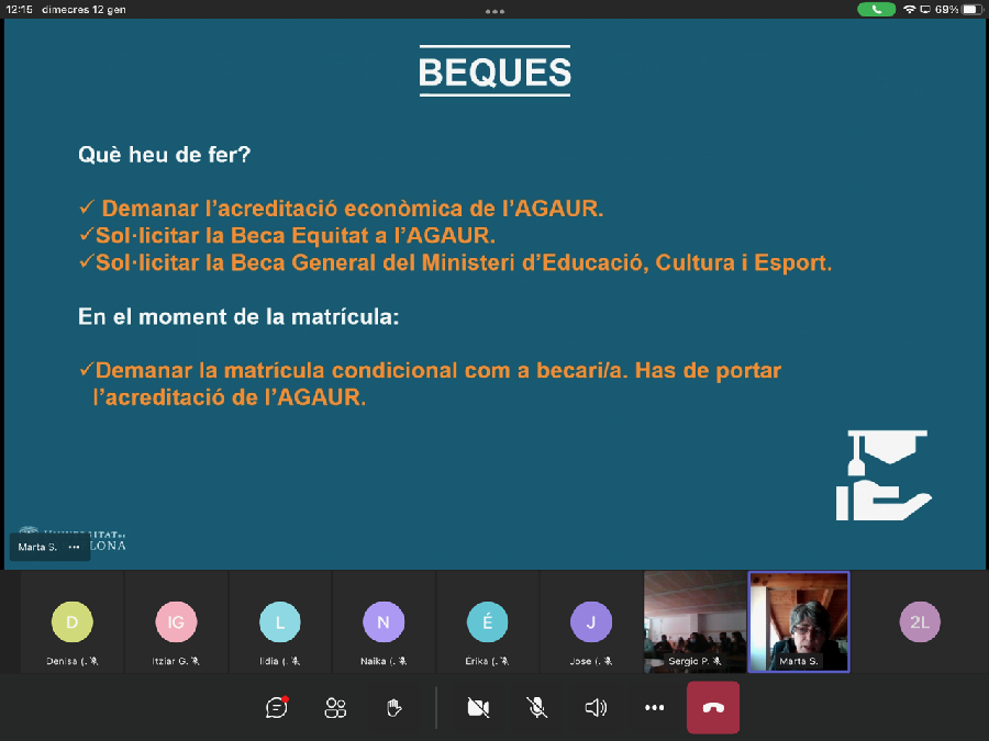 Agraïm, francament, a la Dra. Marta Sancho l’aclaridora introducció a la UB que ens ha fet.