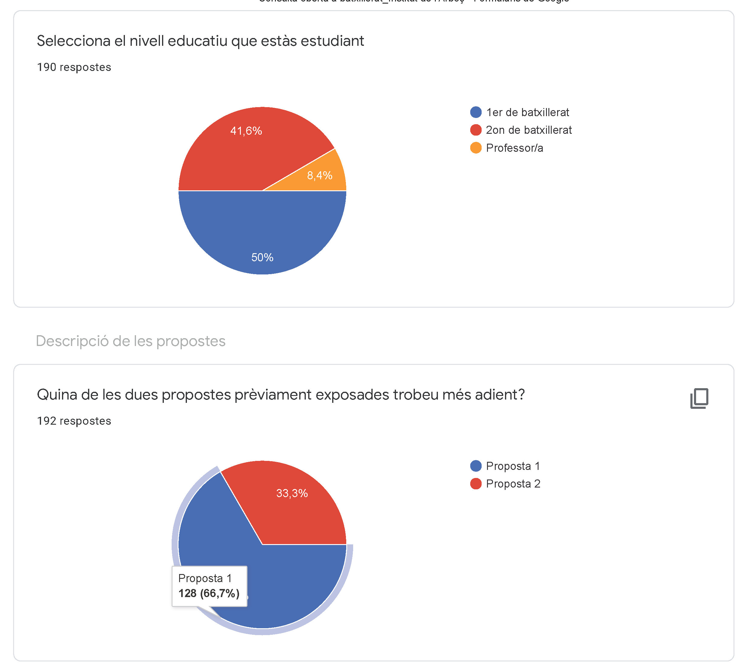 El model híbrid en l’ensenyament postobligatori combina la proposta presencial amb la proposta virtual. El percentatge de presencialitat serà del 50% i optarem per la proposta de dies alterns, d’acord amb l’opció més escollida, i recollida en les instruccions de 30 de juny com una possible mesura per als ensenyaments postobligatoris.