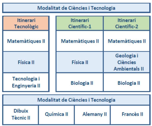 • Els/les estudiants que escullin fer el batxillerat en la modalitat de Ciències i tecnologia cursaran obligatòriament la matèria de Matemàtiques a 2n curs de batxillerat