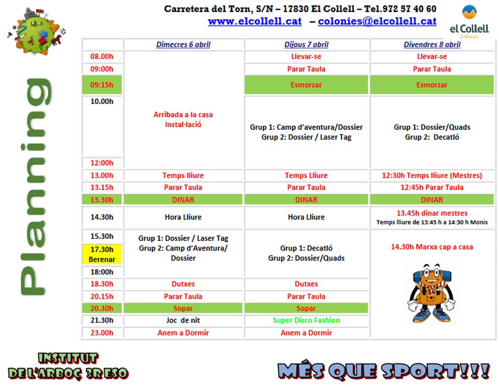 Els propers dies 6, 7 i 8 d’abril l’alumnat de 3r d’ESO realitzarà el crèdit de síntesi al terme al Collell, un complex Lúdic Esportiu ubicat entre el Pla de l’Estany i la Garrotxa.