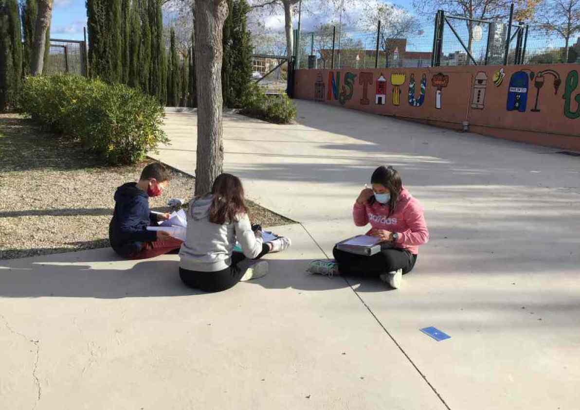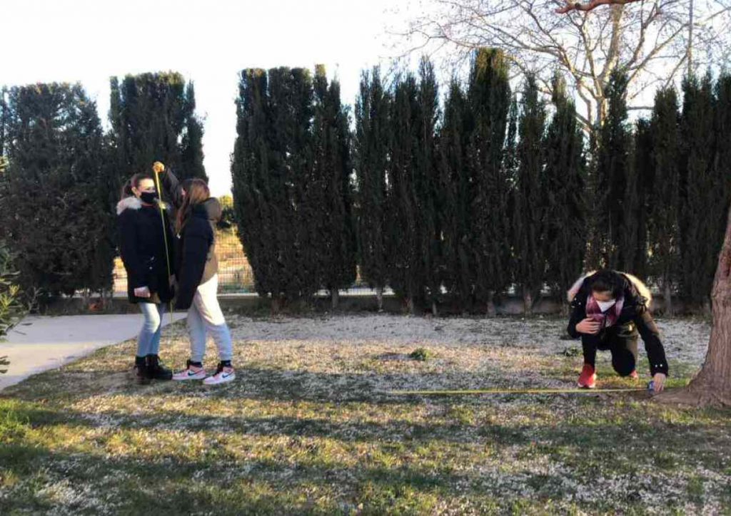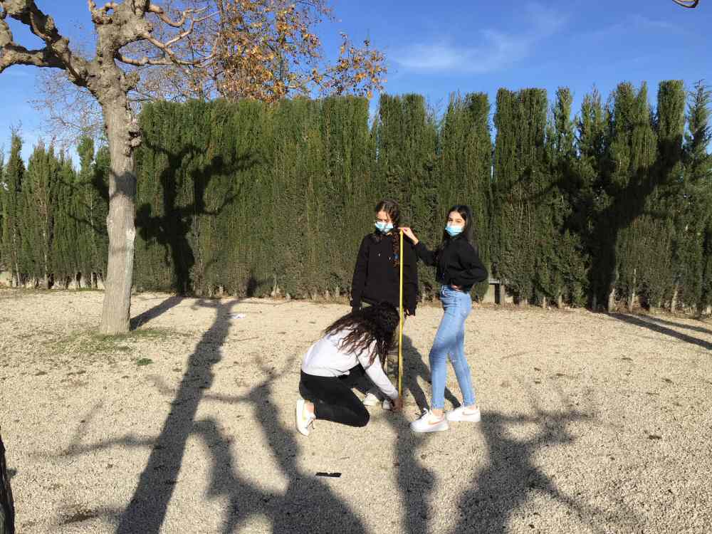 Amb l’excusa d’entendre què vol dir això de “raó de semblança”, van anar al pati a mesurar l’altura dels arbres, no amb una escala sinó amb miralls i cintes mètriques.