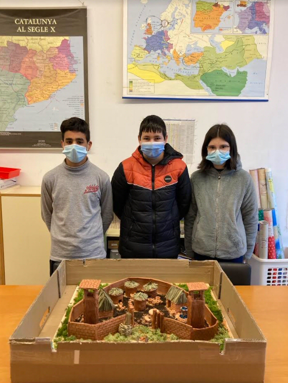 Els alumnes de 1r d’ESO F: Ismael Ghallit, Debora Oros i Gabriel Andrei Sunea, han fet de forma voluntària una maqueta d’una població celtibera per a l’assignatura de Ciències Socials: Geografia i Història. Una representació excel·lent que mostra algunes de les edificacions més emblemàtiques d’aquests tipus d’assentament com, per exemple, les construccions defensives. Un treball immillorable!