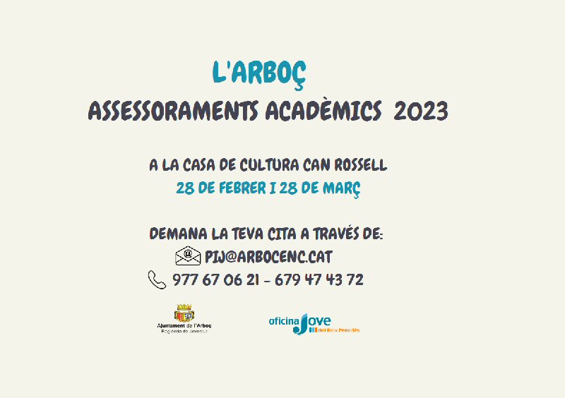 Els assessoraments es realitzaran a la Casa de cultura Can Rossell. Demaneu cita per concretar l’hora a través de pij@arbocenc.cat.