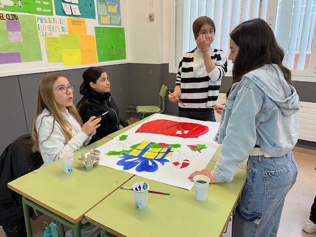 Els estudiants de primer s’han unit en aquesta meravellosa experiència, on la imaginació i el treball en equip s’han fusionat per donar vida a un mural que representa una activitat artística i és part d’un procés educatiu. Aquest procés ha ajudat els alumnes a desenvolupar habilitats creatives, aprenent a expressar-se visualment i a treballar en col·laboració. A més, els ha permès endinsar-se en el significat de la temporada, transmetent valors de convivència i companyonia. A mesura que ens acostem a les celebracions, l’ambient festiu s’estén per cada racó de l’institut.