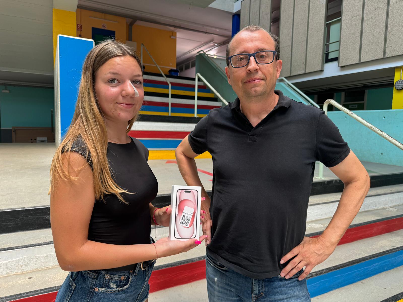 Els talonaris de butlletes, a banda de permetre recaptar diners per a la sortida, estan associats al sorteig de l’ONCE. Aquesta circumstància ha permès que la Judith Boix, que estudiarà 4t d’ESO el proper curs 2024-2025, hagi estat l’alumna afortunada en el sorteig d’un Iphone 15 realitzat el passat 6 de juny.