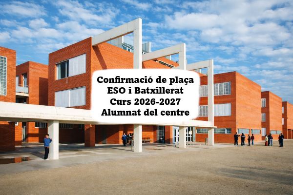Confirmació de plaça – ESO i Batxillerat – Curs 2026-2027 (alumnat del centre)