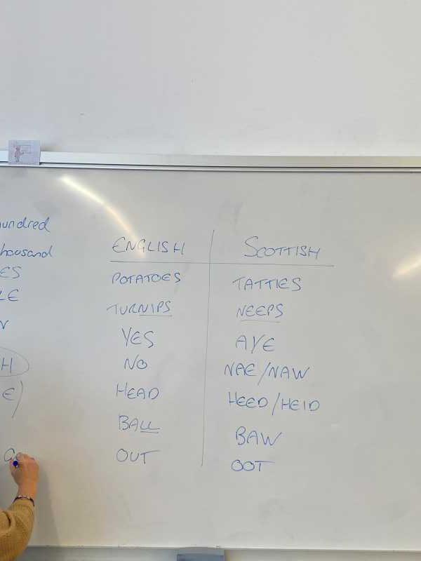 Les sessions també han servit per enriquir el coneixement lèxic, mitjançant la comparació de paraules de l’anglès estàndard amb vocabulari propi de l’escocès (Scots), fet que ha permès descobrir la diversitat lingüística del Regne Unit.