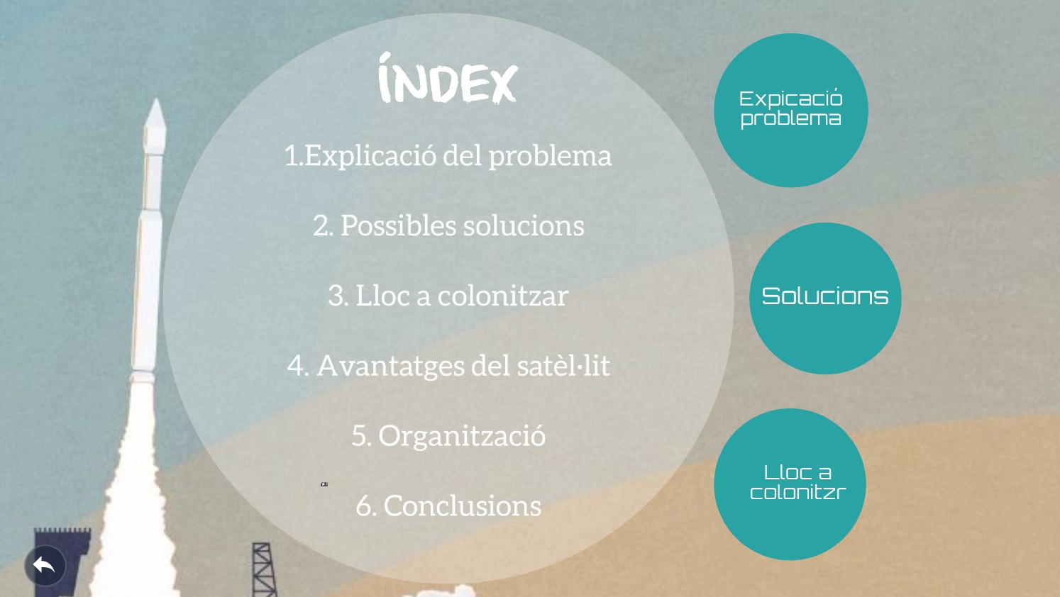 En aquest viatge els alumnes hauran de fer una investigació del Sistema Solar ̶ planetes, satèl·lits, i també allò que l’envolta (s’han descobert exoplanetes amb característiques molt semblants a la Terra) ̶ per triar un lloc a colonitzar una vegada haguem d’abandonar la Terra.