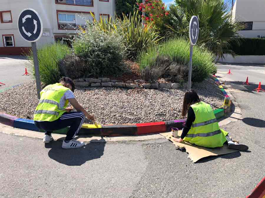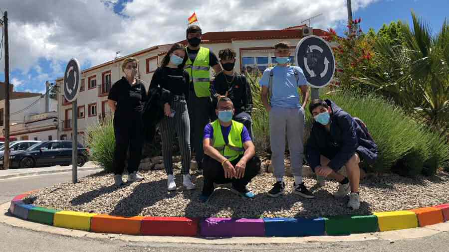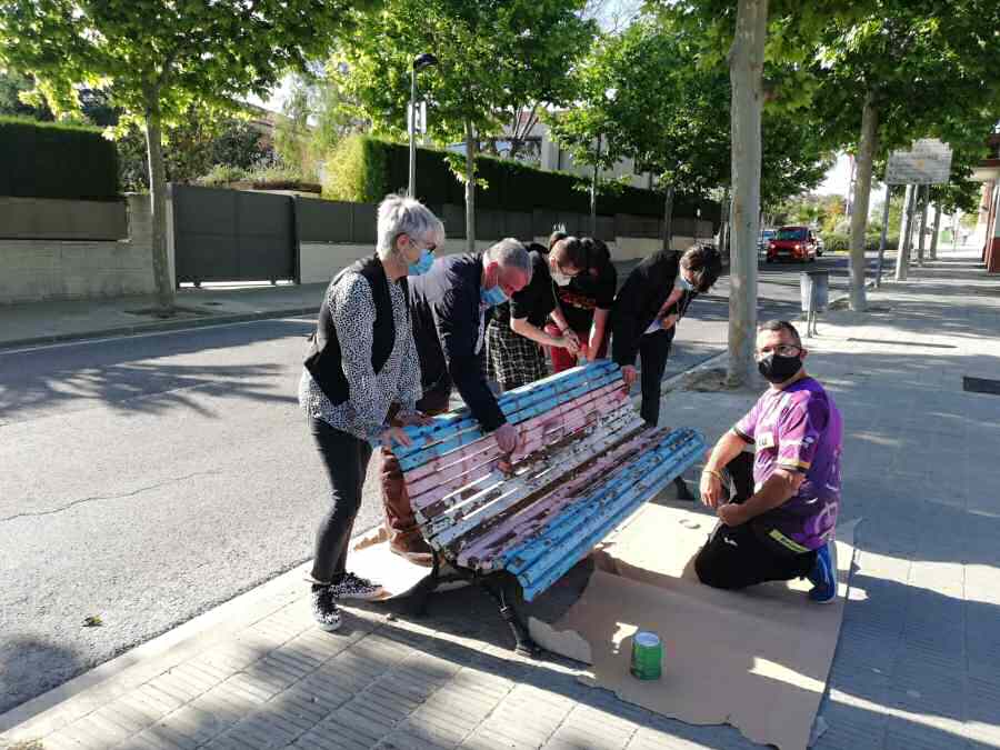El passat 17 de maig vam celebrar el Dia Internacional contra la homofòbia, la transfòbia i la bifòbia. El divendres anterior un grup d’alumnes de l’Institut de l’Arboç va repintar les llambordes de la rotonda de l’Avinguda Sant Jordi amb els colors del col·lectiu LGTBI, amb la finalitat de fer més visible aquesta lluita per la igualtat i contra qualsevol tipus de discriminació per raó de sexe. Aquestes llambordes ja van ser pintades amb els colors de la bandera LGBTI el passat mes de juny de 2020 i ara s’han repintat perquè llueixin de nou. Posteriorment es va hissar la bandera LGBTI a la rotonda de l’Avinguda Sant Jordi i la repintada del banc trans.