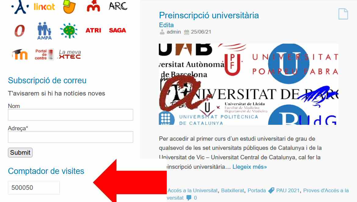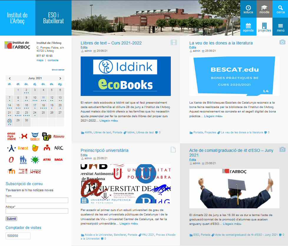 Projectes Espai web de l'institut, Mig milió de visites, NODES - Espai web del centre 0