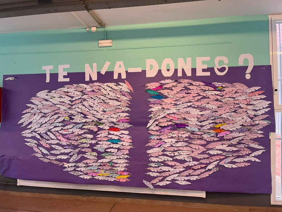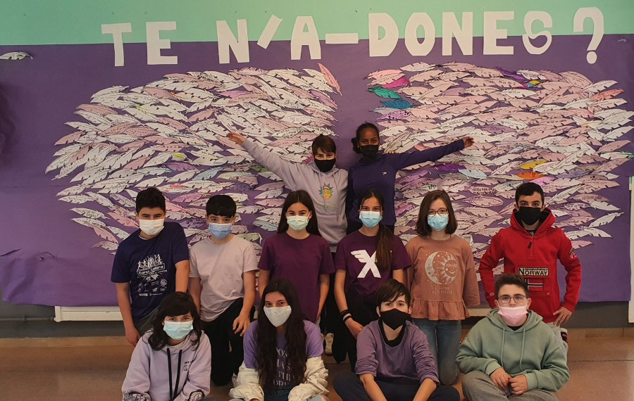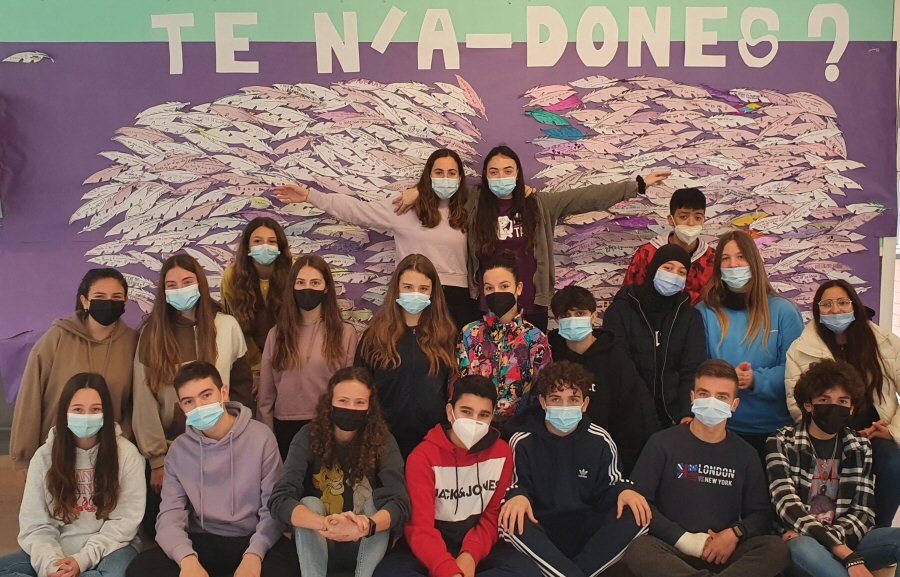 Cada alumne/a de tots els nivells ha retallat una ploma i hi ha escrit el missatge reivindicatiu que ha cregut convenient relacionat amb el tema de la igualtat de gènere, posteriorment s’ha penjat les ales en un mural al hall. Cada grup ha pogut fer-se una fotografia per tal d’immortalitzar una jornades que han de quedar en la retina dels i les nostres estudiants i que tenen per objectiu anar avançant cap a una societat més igualitària.