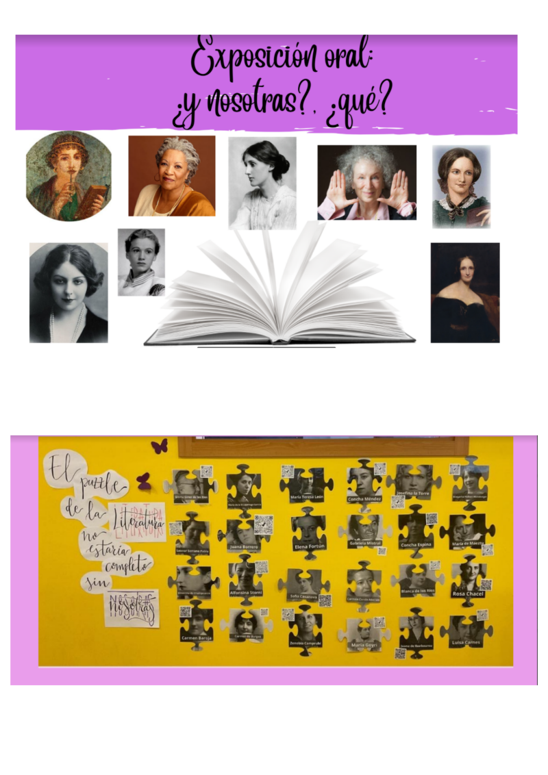 “Vols saber qui va ser Simone de Beauvoir? Saps quants llibres va escriure Agatha Christie? L’alumnat de Literatura universal de 1r de Batxillerat i els de Literatura catalana de 2n de Batxillerat han realitzat un mural amb escriptores de tots els temps. L’alumnat ha escollit una autora, l’han investigat, han sel.leccionat un fragment d’alguna de les seves obres més representatives i han realitzat un àudio on s’explica part de la seva biografia, la seva trajectòria literària i dades d’interès. Per escoltar els àudios han situat un codi QR al costat de cada autora.”