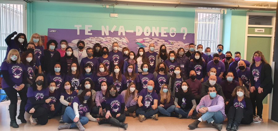 El DIMARTS 8 DE MARÇ – Tot l’alumnat i el professorat ha vingut al centre amb una samarreta de color LILA que ens ha permès commemorar el dia de la dona i deixar testimoni amb una fotografia de cada grup classe. També l’equip directiu, tot el professorat i personal PAS.