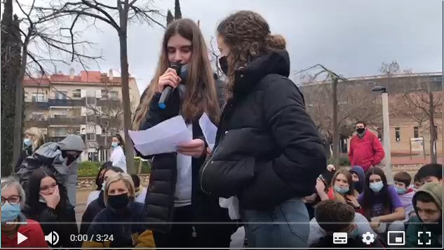 A les 11.45h s’ha fet una sortida amb l’alumnat de 2n per llegir un manifest davant del CAP de l’Arboç. L’alumnat ha portat la samarreta que van estampar l’alumnat de 4t i allà mateix s’han posat tots junts formant una rodona o punt (símbol d’unió i de força).