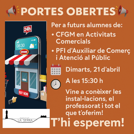 Aquest any l’institut La Serra estrena un nou Cicle Formatiu de Grau Mitjà en activitats comercials (CFGM) i un Programa de Formació i Inserció (PFI) d’auxiliar de comerç i atenció al públic. El Cicle Formatiu de Grau Mitjà en activitats comercials són dos cursos. A l’últim curs combinen les classes teòriques amb pràctiques en […]