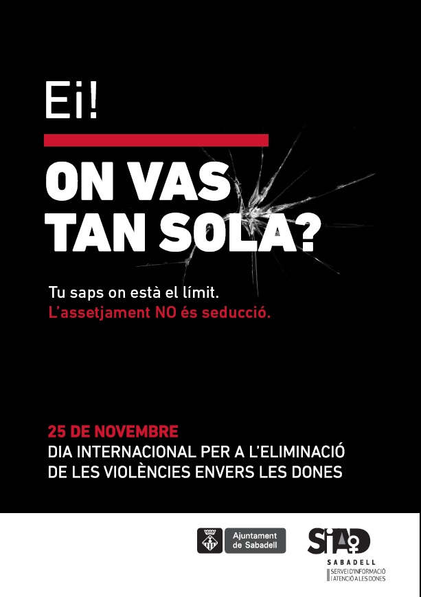 Per últim, hem mostrat un cartell, fet per l’Ajuntament de Sabadell, que deia “ Ei, on vas tan sola? ”. Ningú ha de fer sentir mai insegura a una noia.
