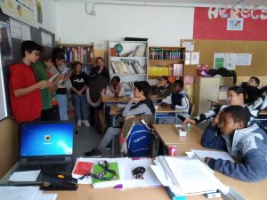 Dos dies abans del 25 de novembre, Dia contra la violència masclista, a l’institut no hem volgut deixar passar aquesta data. Un parell d’alumnes de cada curs, acompanyats de la Manoli, han estat passant per les classes de Primària i Secundària llegint un conte: La princesa vestida con una bolsa de papel. El tema és el patiment de les dones a partir del comentaris i control que han de rebre de part dels homes sobre el seu físic, roba, etc.